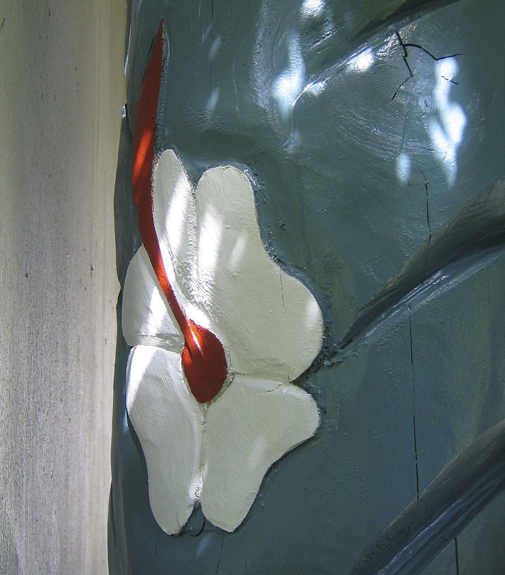 Gestrichen wurden die Stelen mit den Leinölfarben Altweiß, Empir rot, Öljablau und gebrannter Umbra.