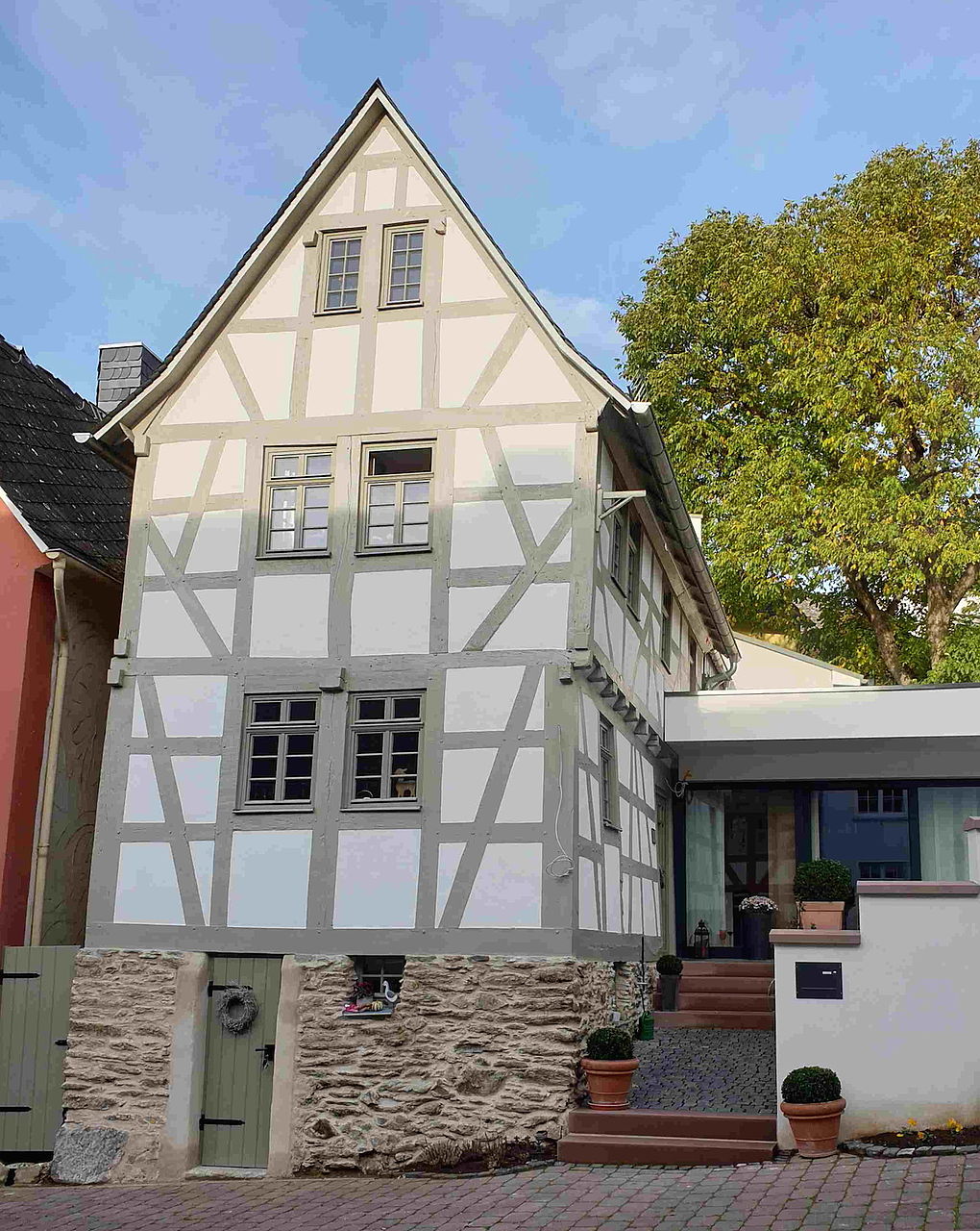 Durch diese Farbkombination wirkt das einfache, ländliche Fachwerkhaus ruhig und harmonisch.
