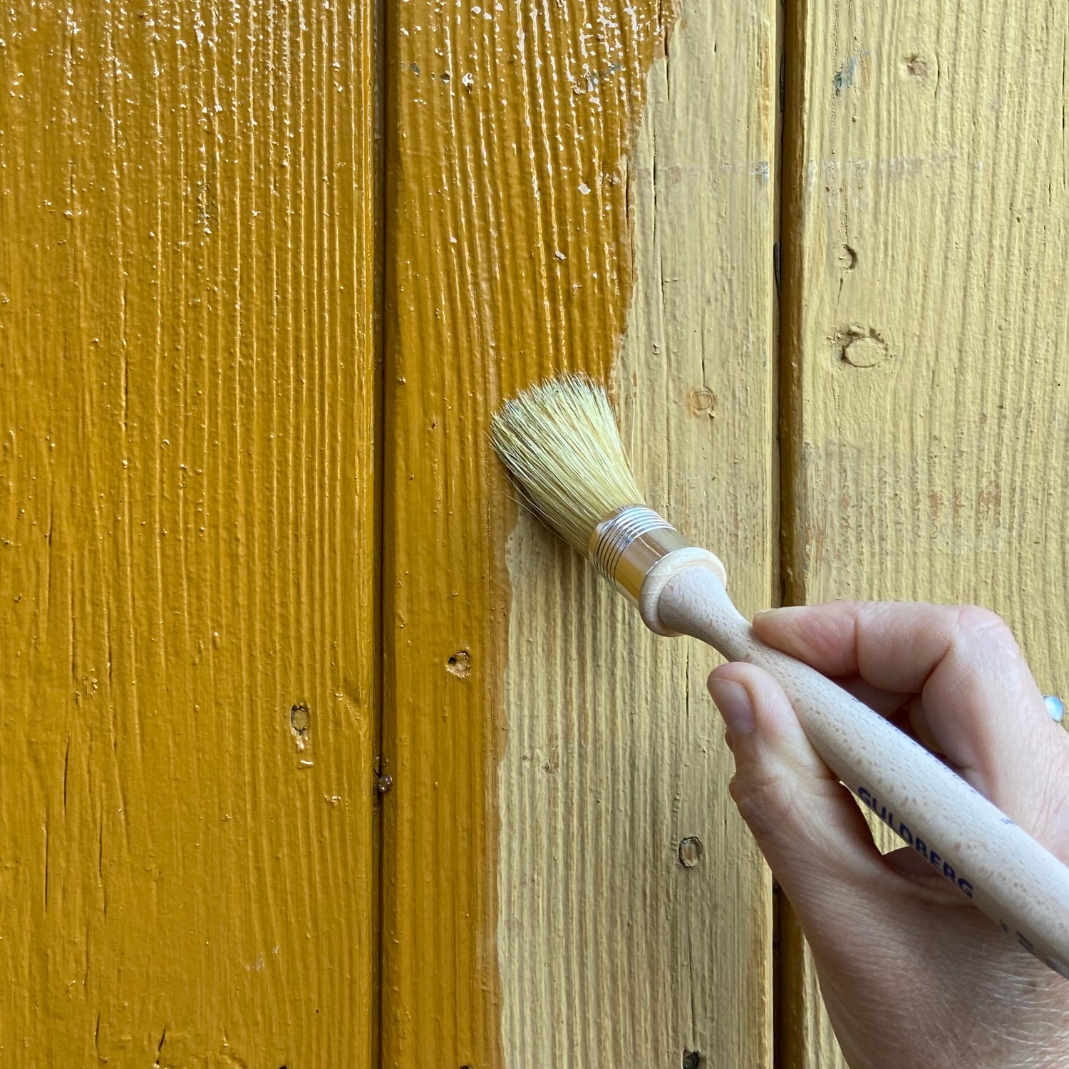 Wenn ihr Leinöl-Farbanstrich in die Jahre gekommen ist und matt wird, reicht es, die Farbe mit gekochtem Leinöl zu überstreichen. Ein neuer Farbanstrich wird in der Regel nur alle 5 bis 10 Jahre benötigt – je nach Wetterseite und Witterungsbedingungen.